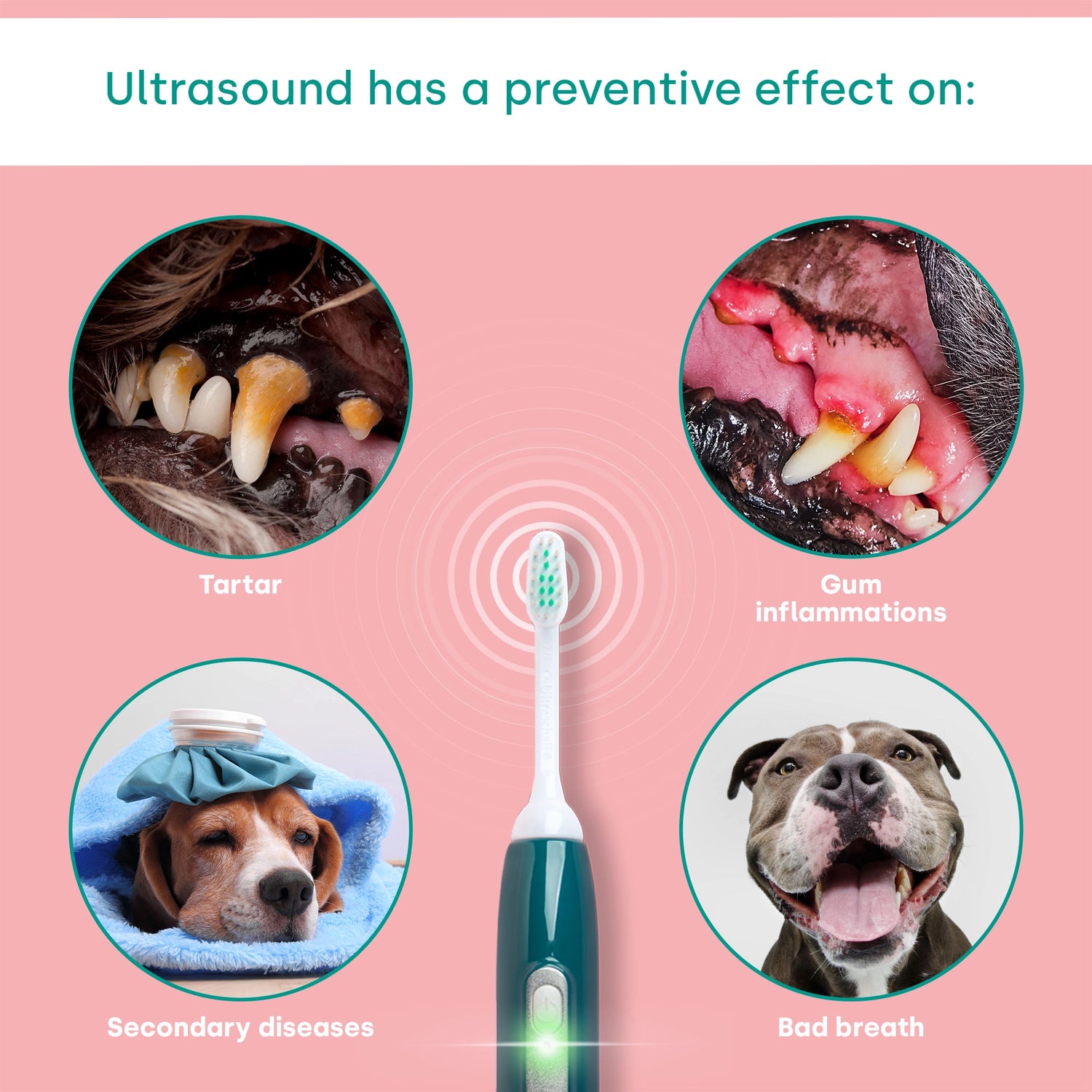 The gentlest and most effective dog toothbrush with ultrasound: The emmi-pet ultrasonic toothbrush is the most advanced tool for your dog´s dental care and prevents tartar and inflammation of the gums when used regularly. With innovative ultrasonic technology, it ensures gentle and thorough cleaning, ideal for large and small dogs.