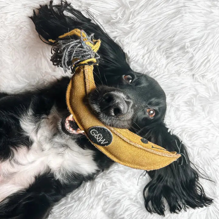 Barry the Banana is a best seller! He has a suede outer layer covering a filling of natural jute fibres.