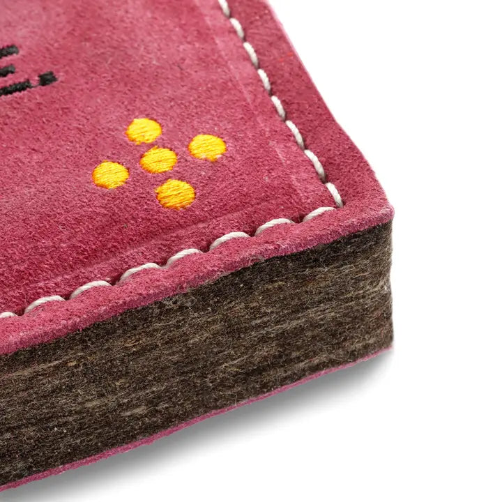 Made from layers of compressed felt and stitched over with soft suede. Wool felt is biodegradable. The suede is a by-product, ensuring that this material is not wasted.