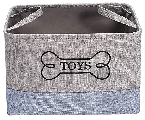 PUPPY TOY BASKET, DOGGIE TOY BIN - IDEA FOR CARRY SMALL DOG PUPPY TOYS, BLANKETS, DIAPER, LEASHES AND DOG STUFF - GRAY BLUE