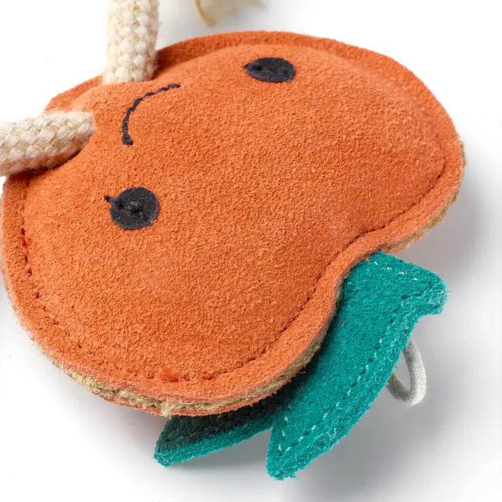 This bright and zesty little satsuma will bring hours of safe fun for you and your pet. Made from 100% natural jute and covered in soft suede, it is safe to chew and is also suitable for smaller mouths to play tug.